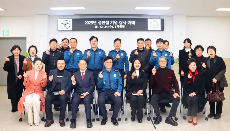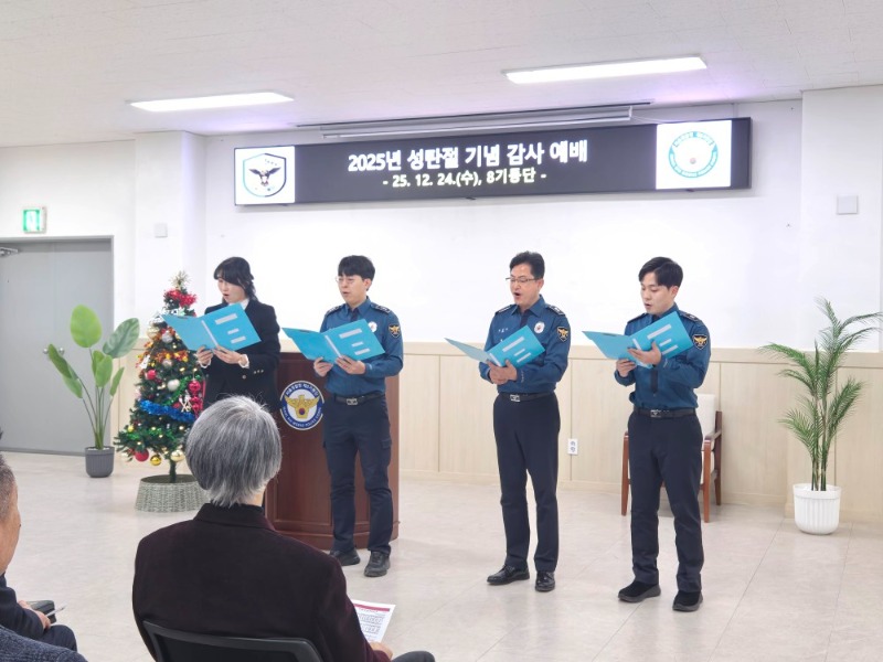 서울경찰청 8기동단이 12월 24일 오전 10시 30분, 기동단본부 1층 강당에서 성탄 감사예배를 열고 한 해를 돌아보며 감사의 마음을 나눴다. 이번 예배는 이주환 총경·남은미 경목실장과 8기동단교회 경찰 임직원, 경목회 및 직장선교회 회원들이 함께 참여해 연합으로 드려졌다.
