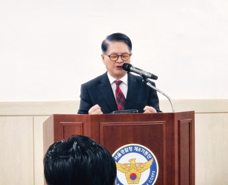 이어 8기동단 단장 이주환 총경이 성탄절을 맞아 열린 성탄감사예배에서 축하 메시지를 전하며, 한 해 동안의 노고에 대한 감사와 새해를 향한 소망을 전했다. 이 총경은 인사말을 통해 “오늘은 특히 감사의 말씀을 더 많이 드려야 할 것 같아 원고를 준비하지 않고, 여러분의 얼굴을 직접 바라보며 마음을 전하고 싶어 이 자리에 섰다”며 예배에 함께한 이들에게 깊은 감사의 뜻을 밝혔다. 이어 “성탄절 감사예배를 함께 드릴 수 있음이 감사하고 영광스럽다”고 말했다. 특히 예배를 준비한 직원선교회에 대해 “인원은 많지 않지만 한 해 동안 여러 차례 귀한 자리를 정성껏 준비하는 모습을 보며 큰 감동을 받았다”며 격려의 말을 전했다. 또한 각자의 자리에서 성실히 사명을 감당해 온 직원들에게도 감사를 표했다. 이 총경은 2025년을 앞두고 경찰 조직이 맞이한 시대적 변화에 대해서도 언급했다. 그는 “이제는 단순한 명령 수행을 넘어 국민의 인권과 헌법적 가치를 판단해야 하는 중요한 전환점에 서 있다”며 “특히 지난 한 해는 사회적으로도 매우 부담스럽고 어려운 시기였다”고 돌아봤다. 이어 그는 “탄핵 정국 등으로 사회적 갈등이 심화된 상황 속에서 경찰은 질서를 유지하는 가운데 매우 어려운 역할을 감당해야 했다”며 “그럼에도 불구하고 오늘 이 자리에 함께한 여러분의 헌신과 수고, 그리고 특히 남은미 경목실장님과 신동호 목사님께서 기도로 함께해 주신 덕분에 큰 불상사 없이 한 해를 감당할 수 있었다”고 깊은 감사를 전했다. 또한 성탄의 의미에 대해 “예수님께서 낮은 곳으로 임하신 것처럼, 경찰 또한 낮은 자리에서 소외된 이웃을 섬기라는 사명이 있다고 생각한다”며 “성탄절을 맞아 이러한 사명을 다시 마음에 새기고 더욱 겸손히 봉사하겠다”고 밝혔다. 끝으로 이 총경은 “올 한 해 동안 보내주신 기도와 응원에 진심으로 감사드린다”며 “남은 연말 잘 마무리하시고 새해에도 하나님의 은혜와 평안이 함께하길 바란다”고 인사를 전했다. 이어 “공식적으로 인사드리는 자리는 이번이 마지막일 수 있지만, 앞으로도 계속 기도로 동행해 주시길 부탁드린다”고 덧붙였다. 이번 성탄감사예배는 경찰 선교 사역의 의미를 되새기고, 공동체가 한자리에 모여 감사와 소망을 나누는 뜻깊은 시간이 됐다.